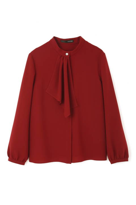 品のあるボルドーワインのフレアブラウスは着るだけで華やかになります。千鳥のスカートはジャージー素材なので、見た目はきちんと見えるのにストレスフリーな着心地です。